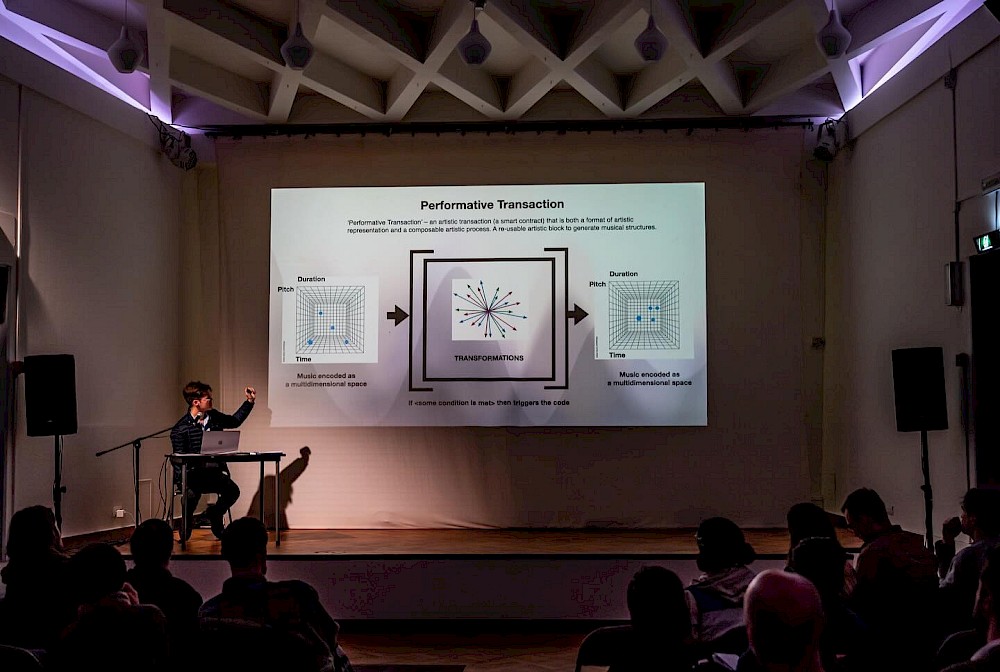 At the centre of this infrastructure is the idea of Performative Transactions: modular, executable processes that encode and transform compositional operations while ensuring full transparency and provenance. Together, these tools enable what Łukawski calls allagmatic composition — a form of music creation in which the compositional system itself becomes the artwork.