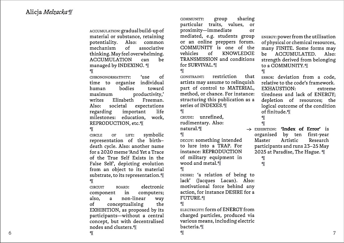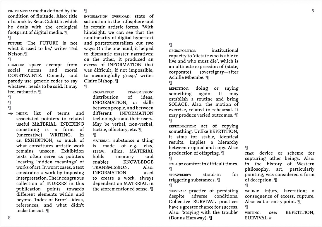 This exhibition by our first-year students uses indexing as a guiding theme, reflected in texts written by the artists and compiled into an exhibition publication.