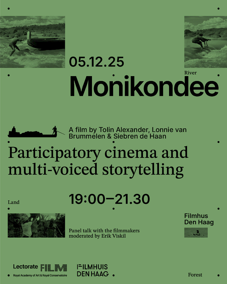 A screening of Monikondee by Tolin Alexander, Lonnie van Brummelen and Siebren de Haan, followed by a panel talk moderated by Erik Viskil.