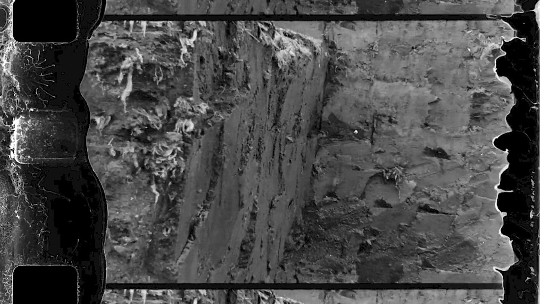 A single roll of analogue film records the materiality of peat cut out of the largest peatlands in Europe. The film roll was left inside the bog for two years, in order for the local ecology to take control over its cinematic representation.