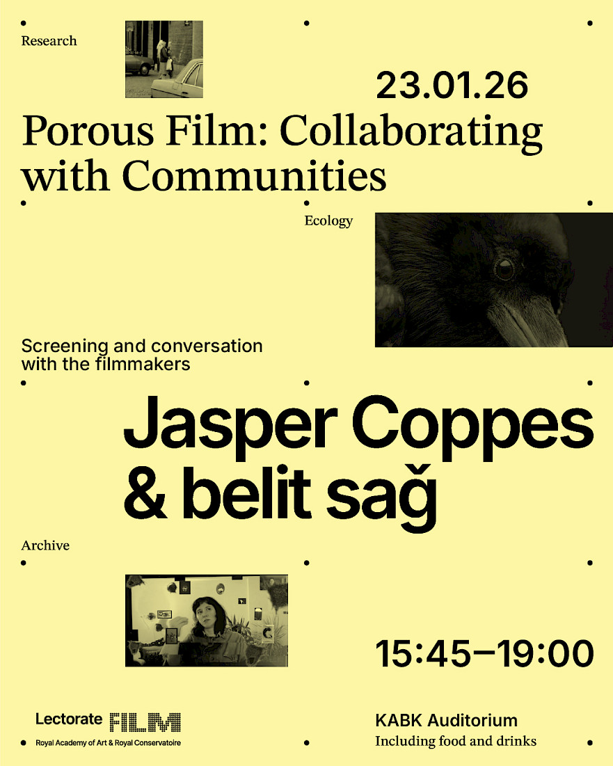 belit sağ and Jasper Coppes are both artists who have worked collaboratively with communities to make experimental documentary films. They have also both worked as theory tutors at KABK for MA Artistic Research and MA Non Linear Narrative respectively.
