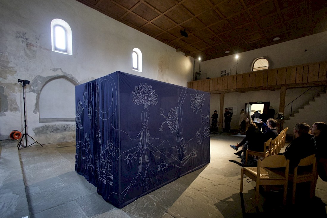 The research Leonie Brandner conducted around the mandragora has taken on two forms: as a book titled Three Becomes Two Becomes One Becomes None - cosmopoiesis of mandragoras published by Onomatopee and as a sung performance for fifty singers and one actress in collaboration with the opera singer Nina Guo titled If Only.