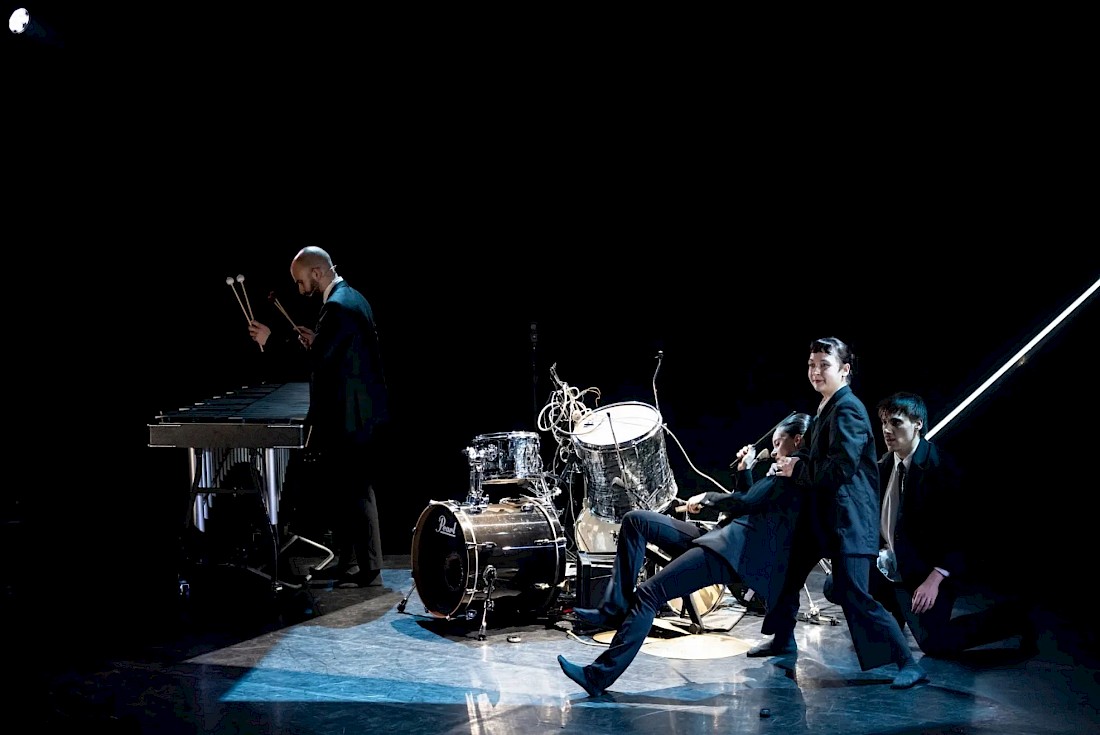 The cast includes Zaneta Keşik and Matija Franjes - two dancers (doubling as choreographers), and João Brito and Kalina Vladovska - two percussionists (doubling as composers), creating the narrative, dramaturgy, choreography and (some of the) music on their own. The director, René Spierings, was invited to be an external coach. Teus van der Stelt and Maurits Thiel - light and sound artists - took care of the final presentation. The four performances took place during and thanks to Muziekzomer Gelderland 2023 and were produced by Jarick Bruinsma. Furthermore, in the research I discuss the social impact of the project’s themes – technology addiction and human communication - and I examine a number of reactions and feedback from audience members.