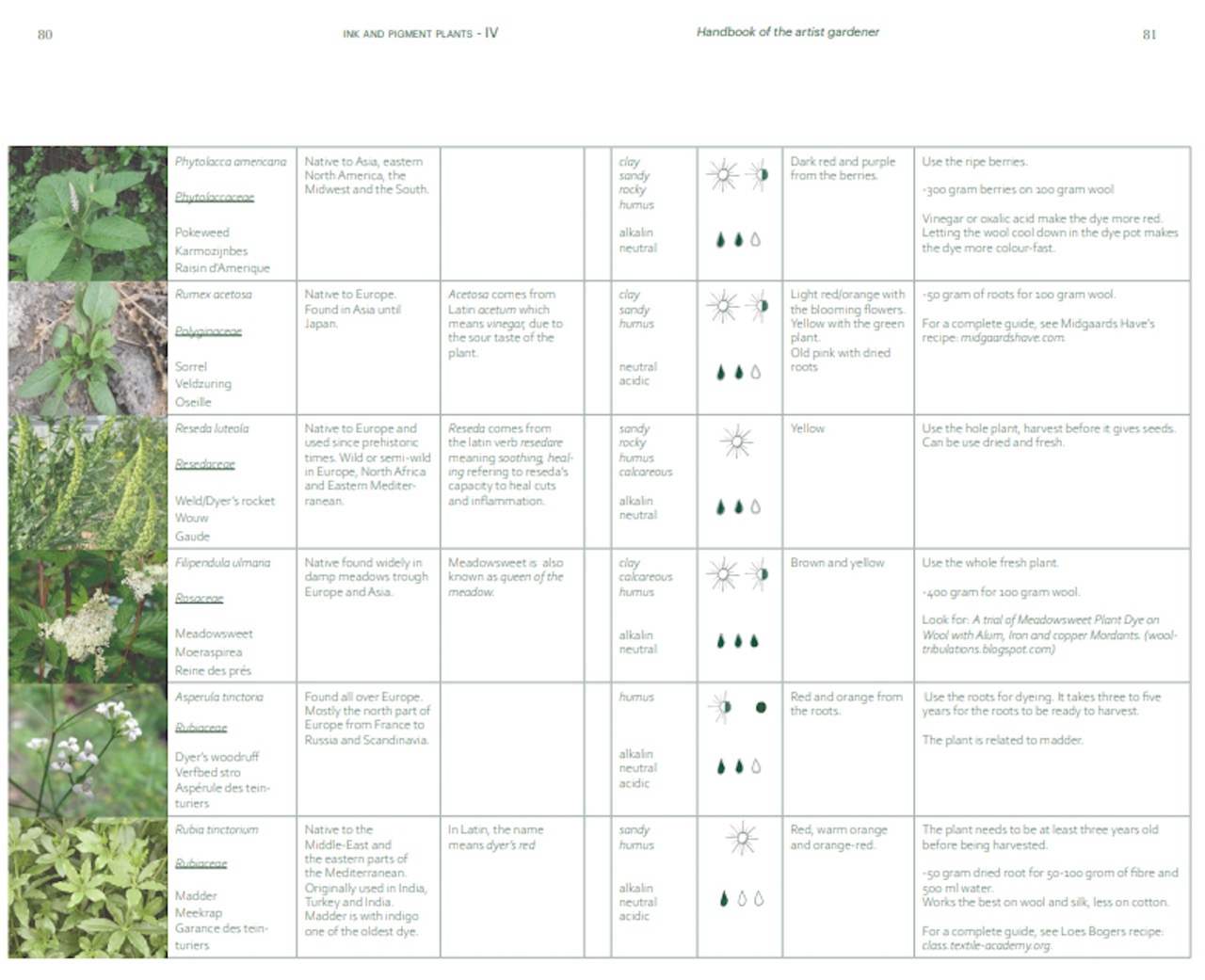 Photos below: plants used by Wieneke Bremer, from the 'Handbook of the Artist Garden'