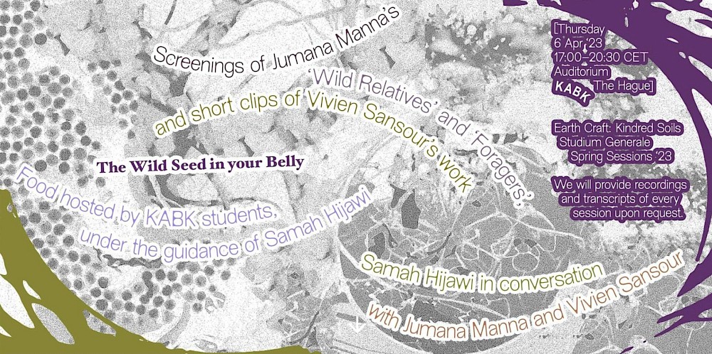 - 17:00 - 19:00 CET: Screenings of Jumana Manna’s ‘Wild Relatives’ and ‘Foragers’, and short clips of Vivien Sansour’s work