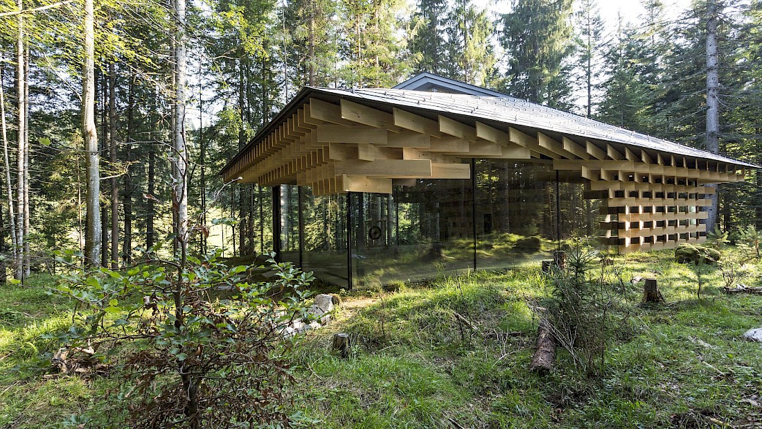 In Kuma’s designs we can see a deep desire to reconnect object and environment, through an architecture that is aware of the interdependency with its environment, as part of nature. His use of locally available materials in his design for the Wood/ Pile meditation centre in Germany, intended to achieve a continuum between the inside and outside, architecture and environment. He describes the choice of material: “…[F]ir trees grown near the site and milled […] to a width of 30mm, piling them up like twigs, in order to produce a transitional scale between the large forest and small architecture. This is also a medium through which humans can be integrated into the forest. The little twigs disperse the light filtering through the skylight, repeating the effect of komorebi or ‘rays of light’ often experienced in the forest.[8]