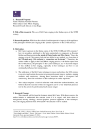 Name: Mariana Andrade Pimenta Main Subject: Early Music Singing Research Coach: Inês de Avena Braga Title of Research: The technical principles of Bel Canto in the 18th and 19th centuries: an experimental case study on dynamic range Research Question: How did the vocal exercises from Bel Canto singing influence my singing technique, especially in the dynamic range associated with pitch? Summary of Results: The format chosen by the author for this investigation was the Research Paper, as this study required an investment on knowledge about Bel Canto singing technique and the application of the latest into her singing practice, which resulted into a deep reflection and reached new conclusions. The focus of the practical sessions of the author was on her dynamic range. The purpose was to increase flexibility in her dynamic range in the different registers of the voice. The research went through the following process: (1) an audio recording of G. F. Händel aria: “Se Pietà di me non senti”, from the opera Giulio Cesare; (2) in this same phase of the research, she used the software Voice Profiler 5.1 to record her Voice Range Profile (VRP), the same piece and the vowel /a/, throughout the vocal registers, exploring the complete dynamic range of her voice; (3) after three months of practicing specific exercises designed to train the dynamic range, the same recordings were made and also a comparison with the first ones. The results indicated that the training had an impact: An increase of flexibility in realizing Messa di Voce was verified in the author’s middle vocal register. This impact did not happen in the highest vocal register, where technical differences were not detected by the VRP recording. The latest result is also applicable in the Händel aria. This method has proved to be beneficial in the middle section of the author’s vocal range. The appliance of this method is a work in process, which the author believes that it should bring more beneficial results; it offered the author a much bigger awareness of the breathing system, which resulted in a better quality Messa di Voce. The knowledge gained from the sources from the 18th and 19th centuries, guided the practical study in this investigation. In future studies, the author wishes to further research Italian vocal technique and use this important knowledge of historical information by transferring it to her singing practice. The outcome of the present study is an interesting interdisciplinary fusion between Old Italian vocal pedagogy of Bel canto singing and advanced vocal technology. Biography: Mariana Pimenta is a soprano born in Madeira Island, Portugal. She graduated in Classical singing in Aveiro, Portugal in 2011 and started her specialization in Early Music Singing at the Royal Conservatoire of The Hague in 2012. As a performer Mariana has been performing as a soloist and in ensemble singing, in some countries, as The Netherlands, Portugal, Italy and Ecuador.