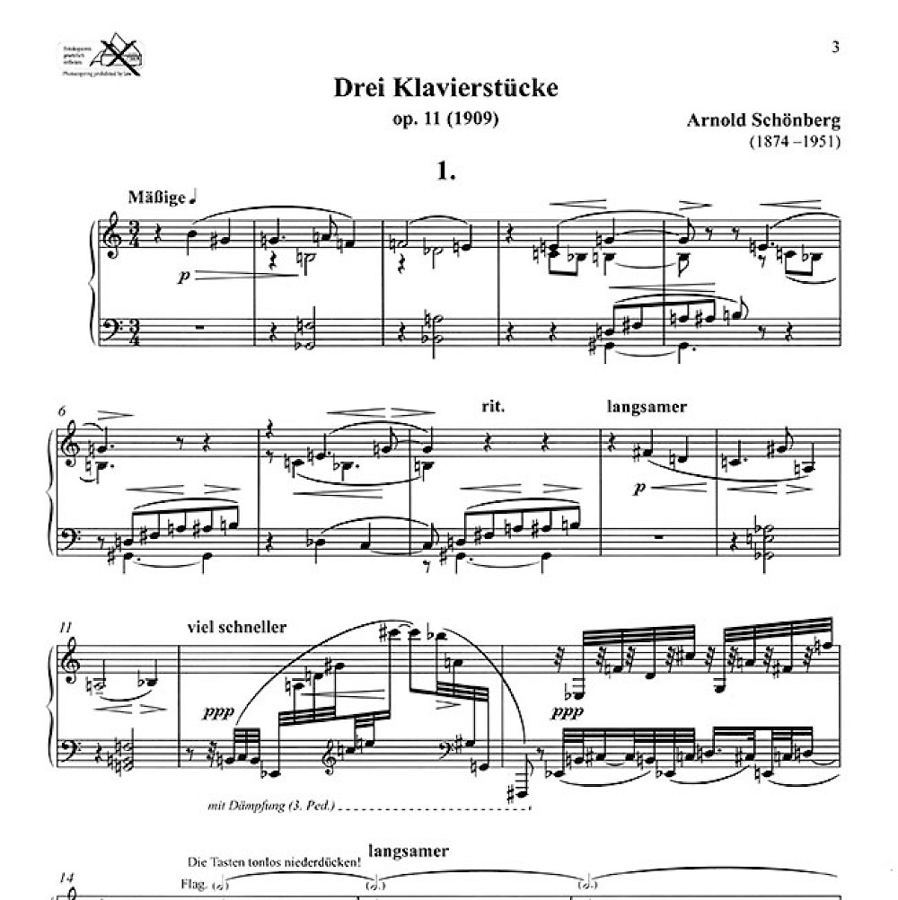 Within Arnold Schoenberg’s compositional oeuvre, his piano music occupies only a relatively modest space. It is striking, however, that the composer turned to the piano at important points of transformation in his stylistic development. His Fünf Klavierstücke op. 23 and the Suite für Klavier op. 25 (both composed around 1923), for instance, are the first compositions in which he used his twelve-tone technique. Similarly, the earlier Drei Klavierstücke op. 11 (1909) and the Sechs kleine Klavierstücke op. 19 (1911) mark Schoenberg’s preceding turn to free atonality. It is this latter musically fascinating and historically important turning point that forms the stylistic background of this research project.